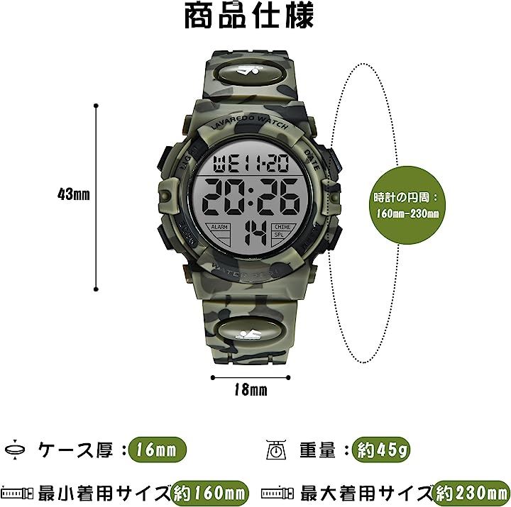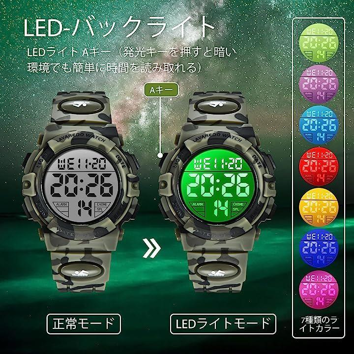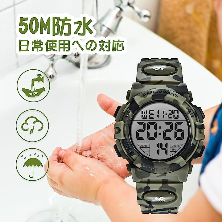 子供 デジタル腕時計 キッズ 防水腕時計 男の子 スポーツウォッチ ボーイズ 多機能 50M防水 LED表示 日本語取扱説明書付き |