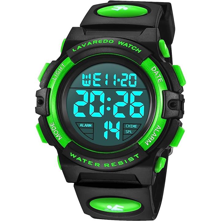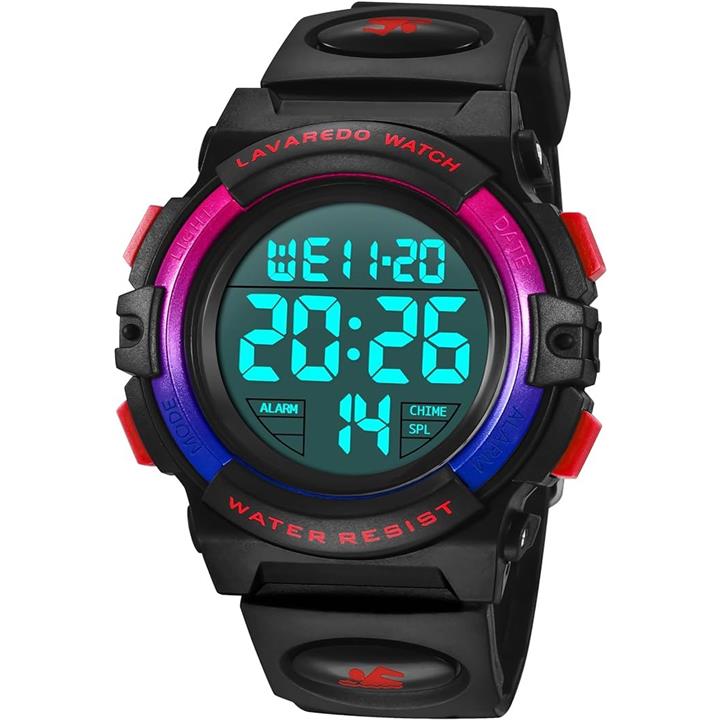 はっきりとした表示画面と大きな数字表示で、より子供向けのデジタル腕時計です。