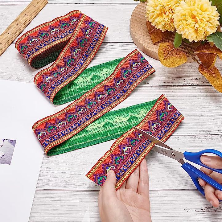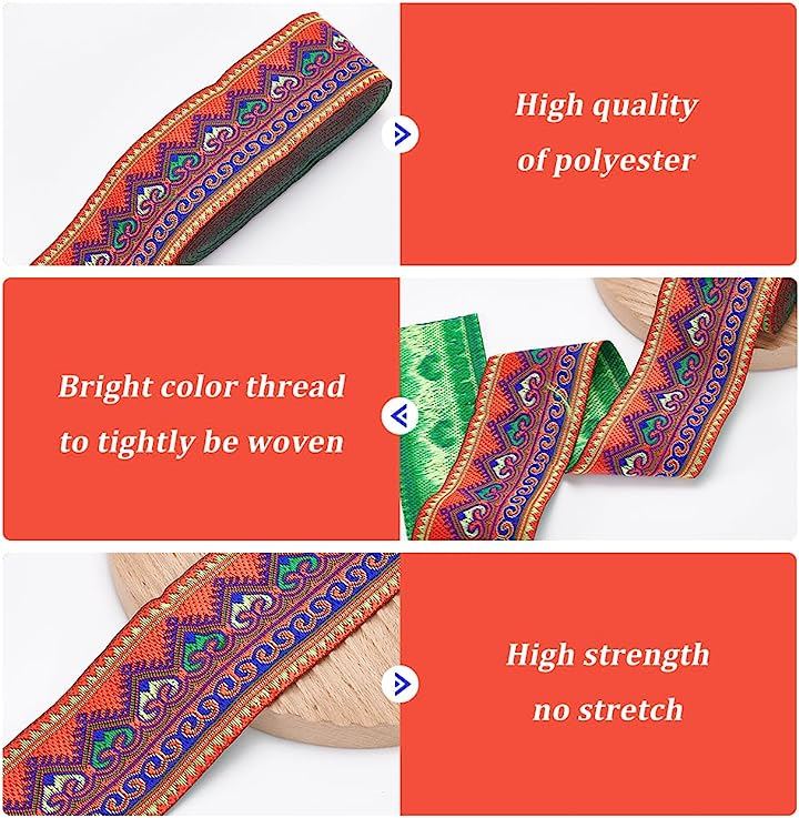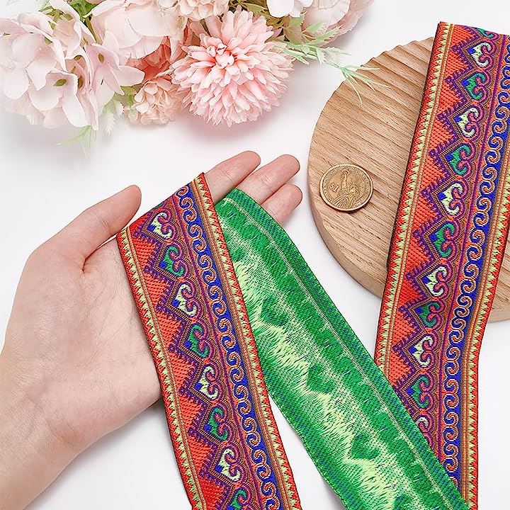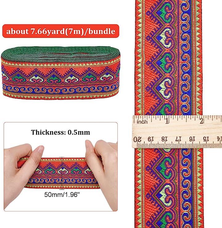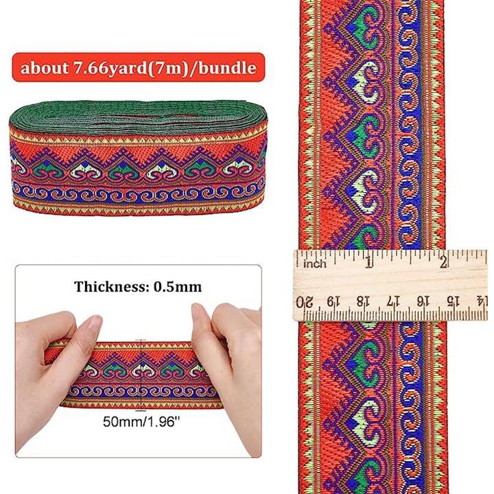 2色 5cm ジャカードリボントリム 7m エスニックスタイル 刺繍 ポリエステル ヴィンテージ リボン織布 バイアステープ DIY スタイル2