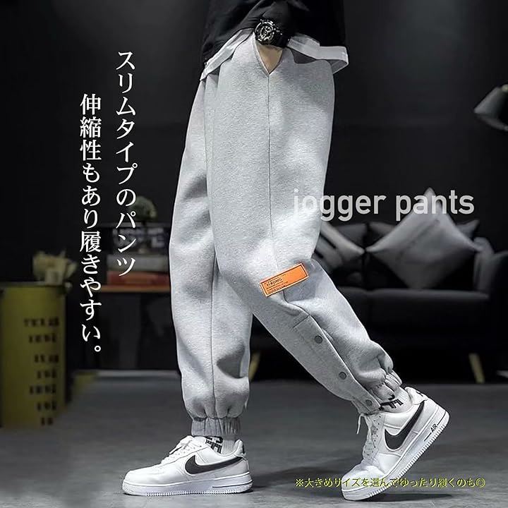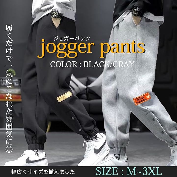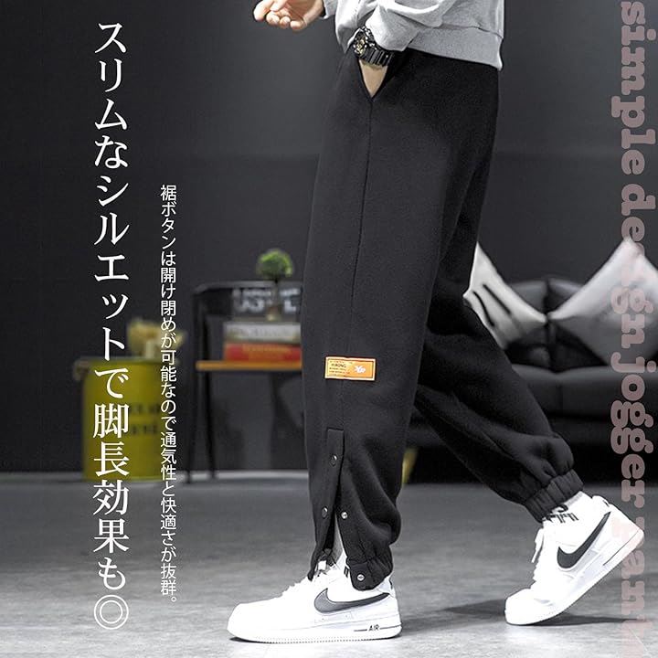 ジョガーパンツ メンズ 多用途 スポーツ カジュアル ルームウェア スリム 伸縮性 通気性 ワンポイント サイドボタン