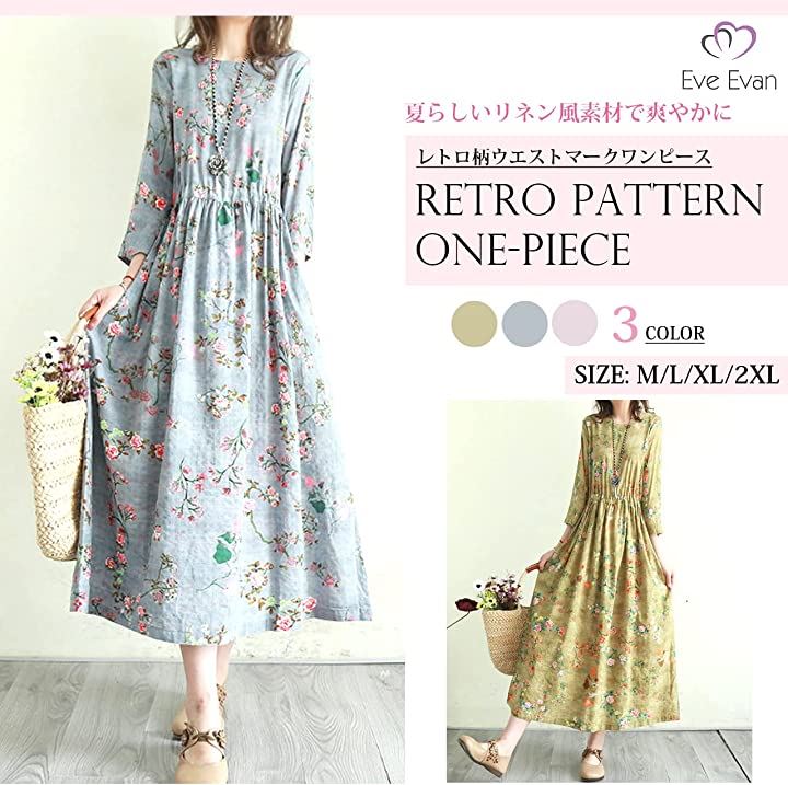 [イヴ エヴァン] 上品 レトロ ワンピース ロング 丈 ワンピ 素敵 エレガント 着痩せ 華奢見え 大人 ぽっちゃり カワイイ 大きいサイズ 都会的 やわらかい ポッチャリ セミフォーマル キレイメ 大人っぽい EE49 |