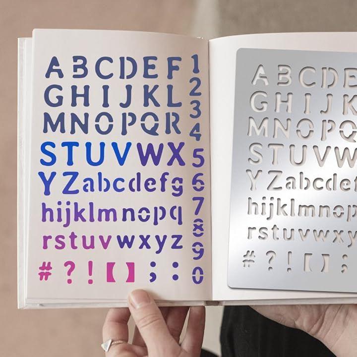1枚 ステンシルシート 描画テンプレート 記号 数字 アルファベット ステンレス製 ペイント用テンプレート 手帳用 絵図 アルバム リサイクル DIYクラフト ハンドメイド スクラップブック作り
