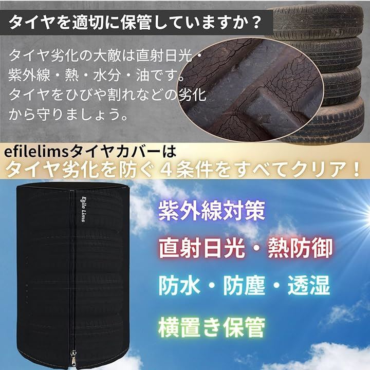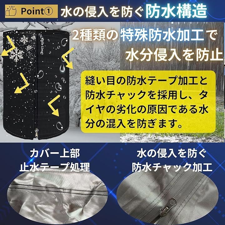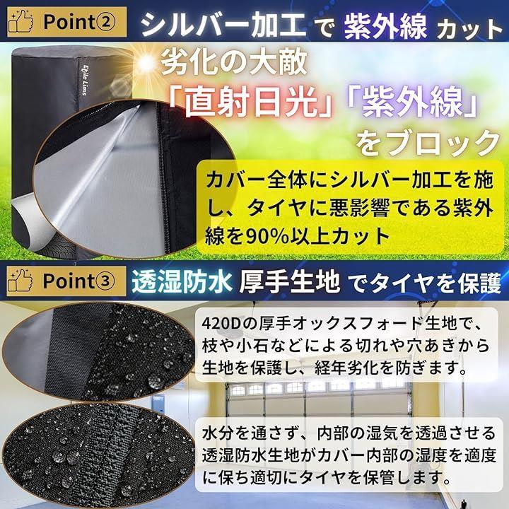 タイヤカバー プレミアム防水防汚コーティング タイヤラック 屋外 保管 収納 ホイール スペアタイヤ 厚手生地 防水強化 紫外線防止 収納袋付き