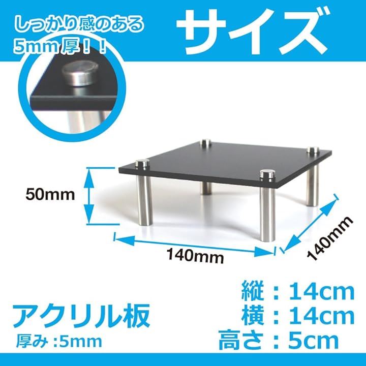 MKEマーケット 台座 アクリル台 マット 黒 ディスプレイ台 フィギュア 陳列台 アクリルスタンド 什器 正方形/高さ5cm