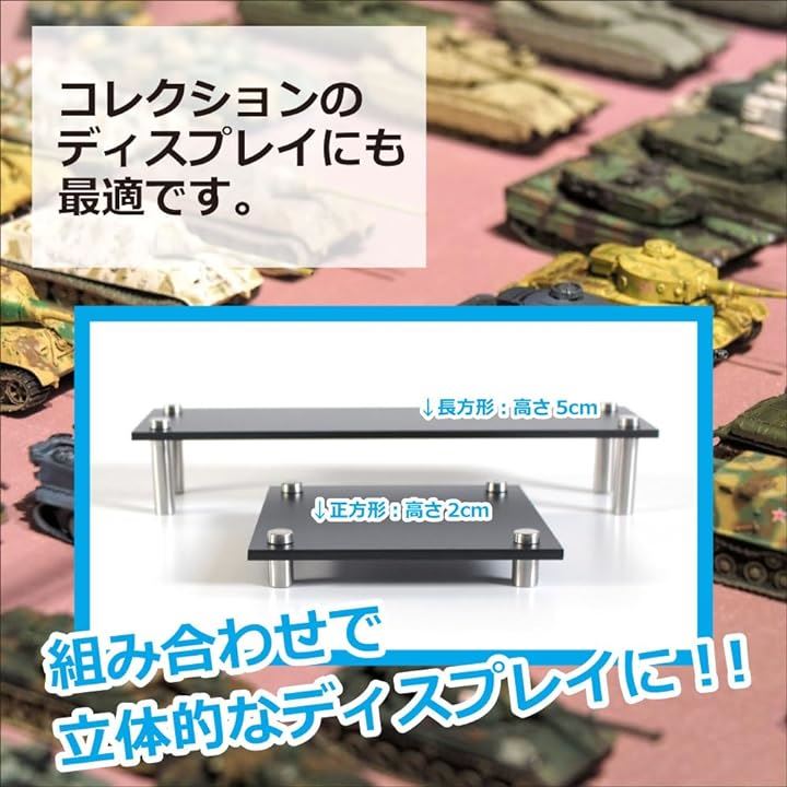 台座 アクリル台 マット 黒 ディスプレイ台 フィギュア 陳列台 什器 正方形/高さ2cm