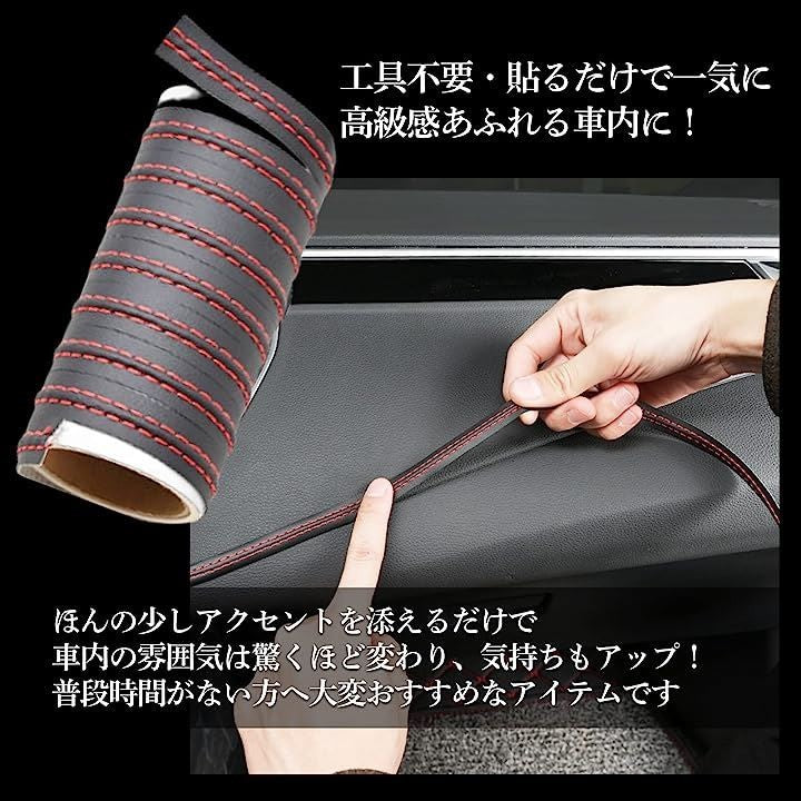内装 カスタム ダブルステッチ テープ 汎用 レザー ドレスアップ パーツ シート デカール ステッカー 貼付け 2m