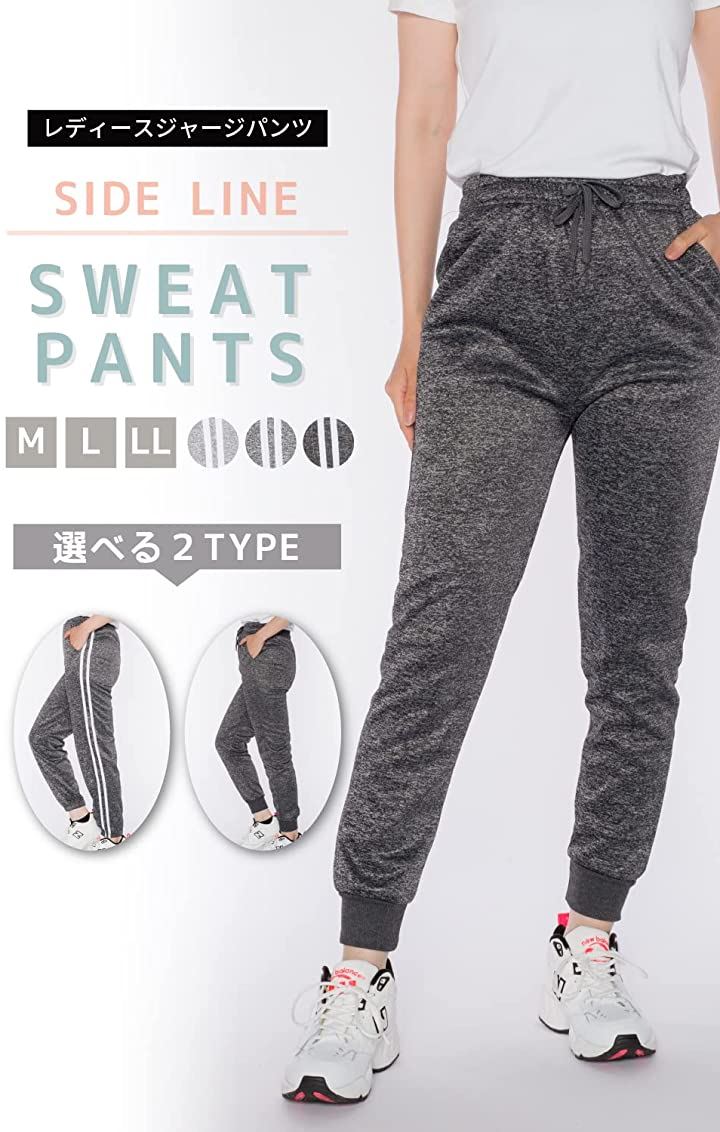 ワイズファクトリー レディース ジョガーパンツ サイドライン スポーツウェア(L, チャコールグレー) |