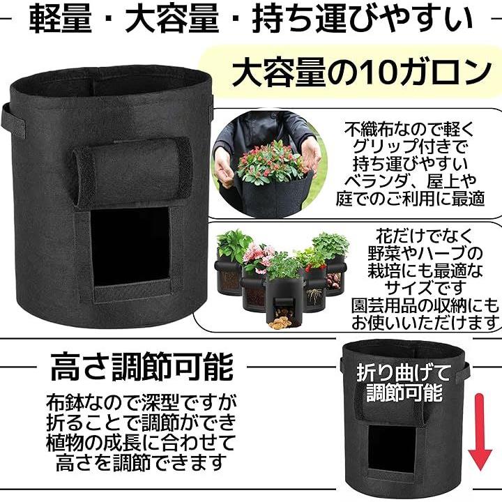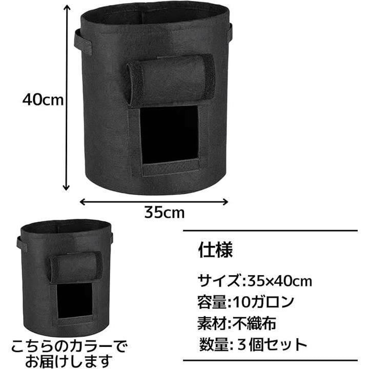 不織布 プランター ポット 10ガロン 深型 根腐れ防止 黒 3個セット H40xD35 園芸 野菜