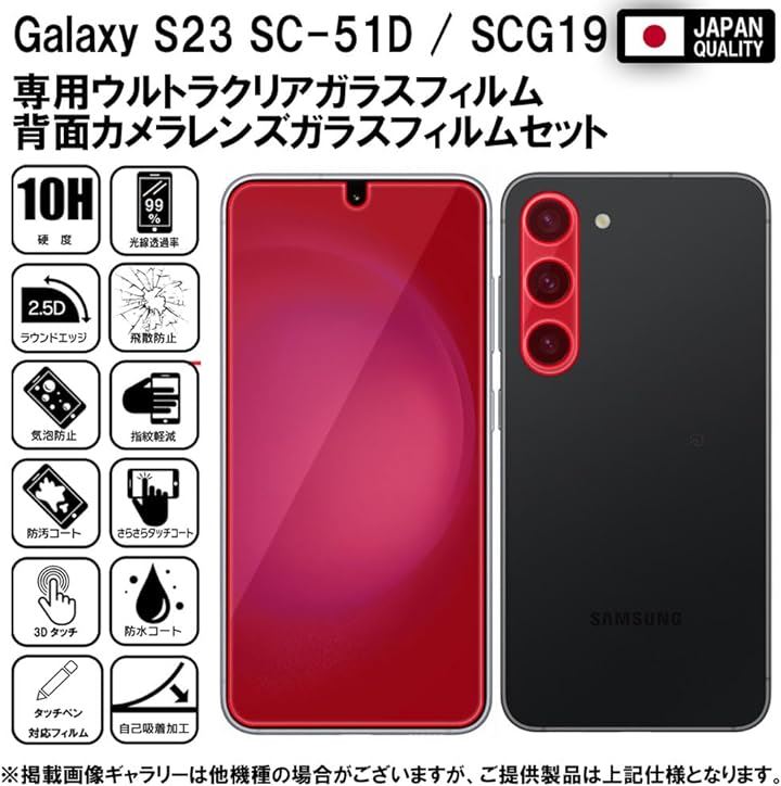指紋認証対応版2枚+2枚 フィルム ギャラクシー Samsung Galaxy S23 SC-51D / SCG19 ガラスフィルム カメラフィルム レンズフィルム レンズ保護ガラス
