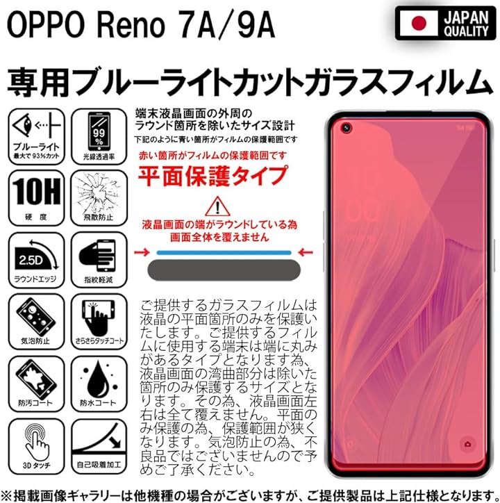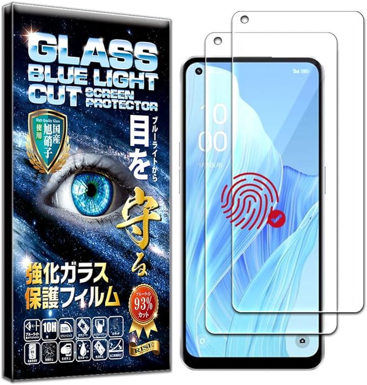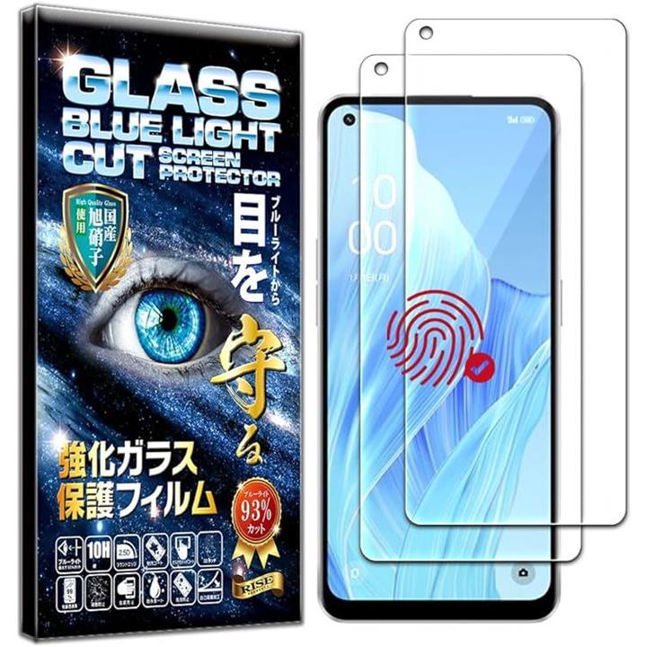 指紋認証対応版2枚セットフィルム OPPO Reno7A OPG04 / Reno9A 用 ガラスフィルム ブルーライトカット 93% 保護フィルム 強化ガラス