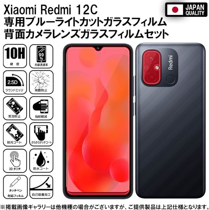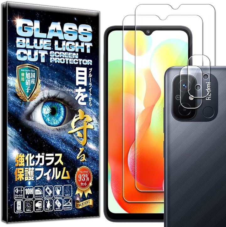 2枚+2枚 フィルム Xiaomi Redmi 12C ガラスフィルム ブルーライトカット カメラフィルム レンズフィルム レンズ保護ガラス レンズカバー 保護フィルム 強化 高透過