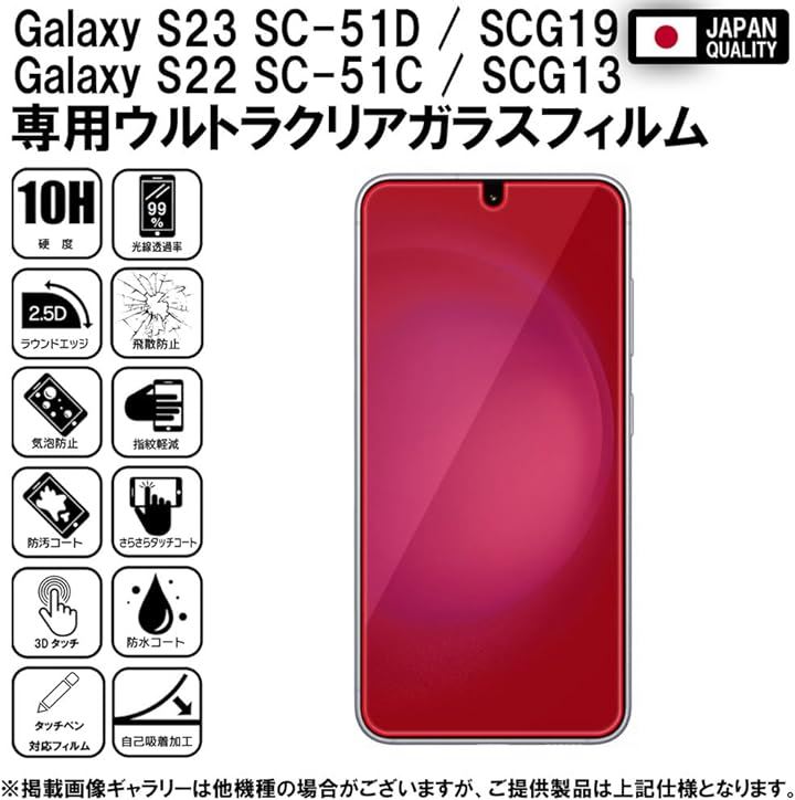 指紋認証対応版2枚セットフィルム ギャラクシー Samsung Galaxy S23 SC-51D / SCG19 S22 SC-51C SCG13 ガラスフィルム 保護フィルム