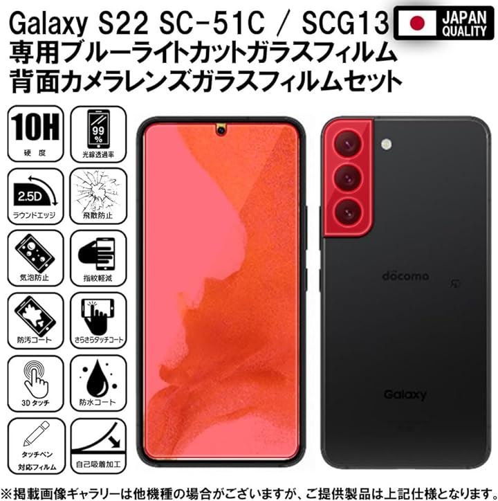 指紋認証対応版2枚+2枚 フィルム ギャラクシー Samsung Galaxy S22 SC-51C / SCG13 ガラスフィルム ブルーライトカット カメラフィルム レンズフィルム