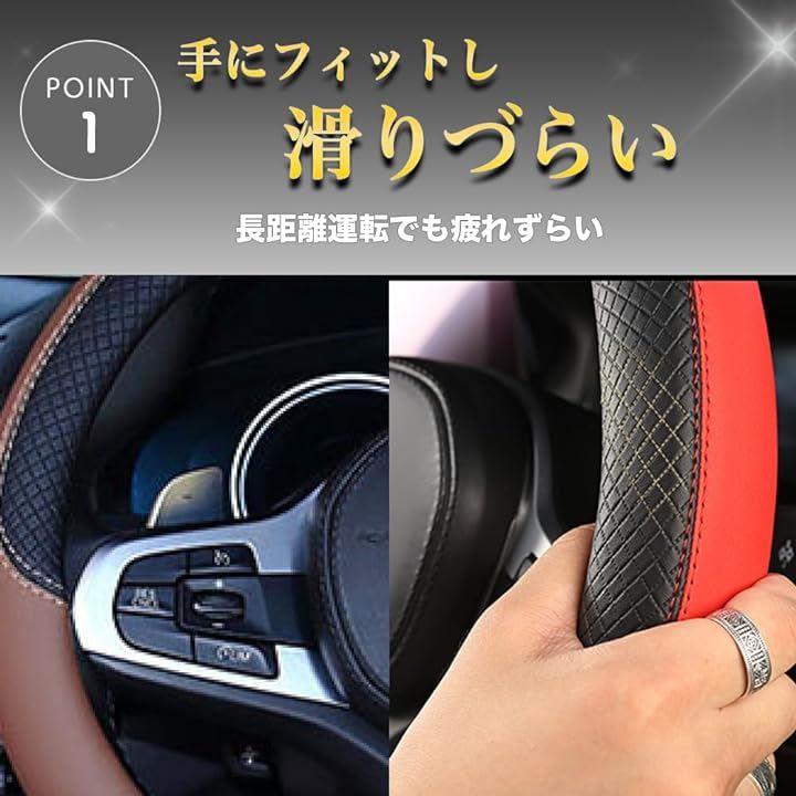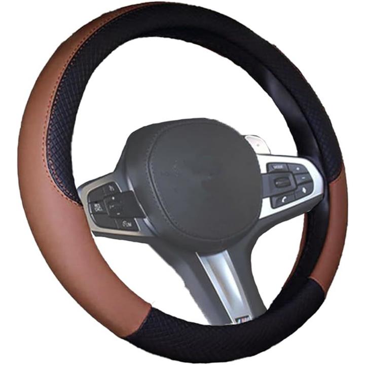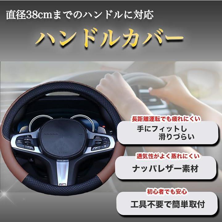 ハンドルカバー 軽自動車 オシャレ ステアリングカバー 本革 ブラウン 直径38cm対応