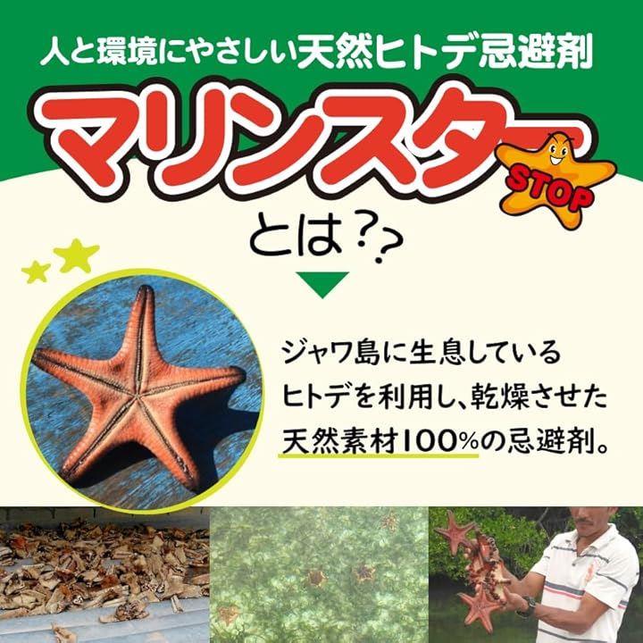 「商品説明」簡単設置・安心・安全なヒトデ成分で撃退。人と環境にやさしい天然ヒトデ忌避剤「マリンスター」。