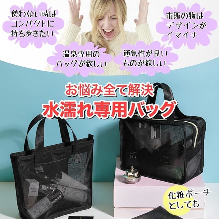 AllBright 温泉バッグ スハ゜ハ゛ック゛ サウナバッグ プールバッグ メッシュ スイミング 海水浴