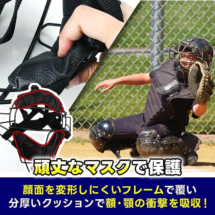 キャッチャーマスク フェイスガード クッション付き フレーム構造 通気性 サイズ調整 ソフトボール 審判