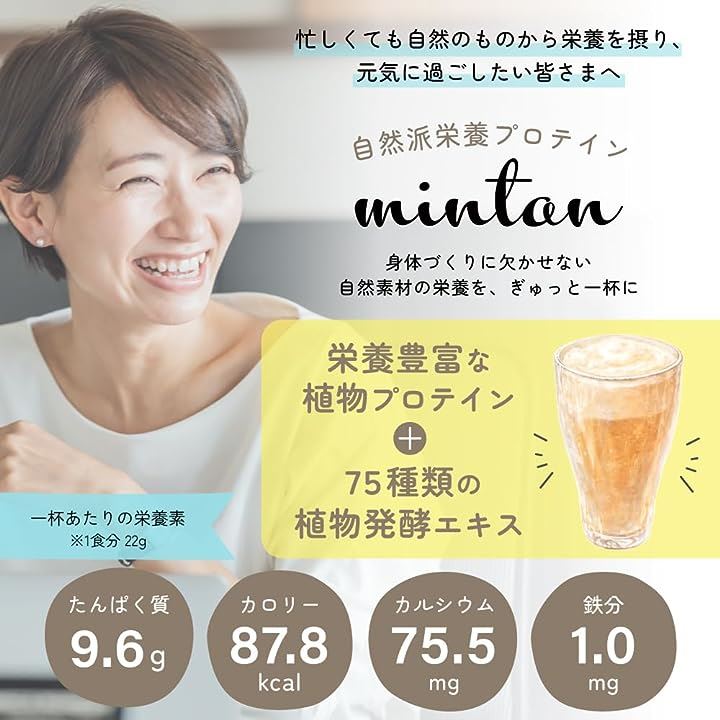 自然派栄養プロテイン 植物性たんぱく質+75種類の植物発酵エキス 220g 大人から子供まで 黒糖きなこ風味 甘さ控えめ