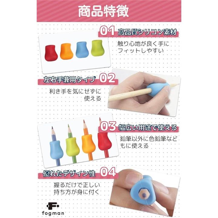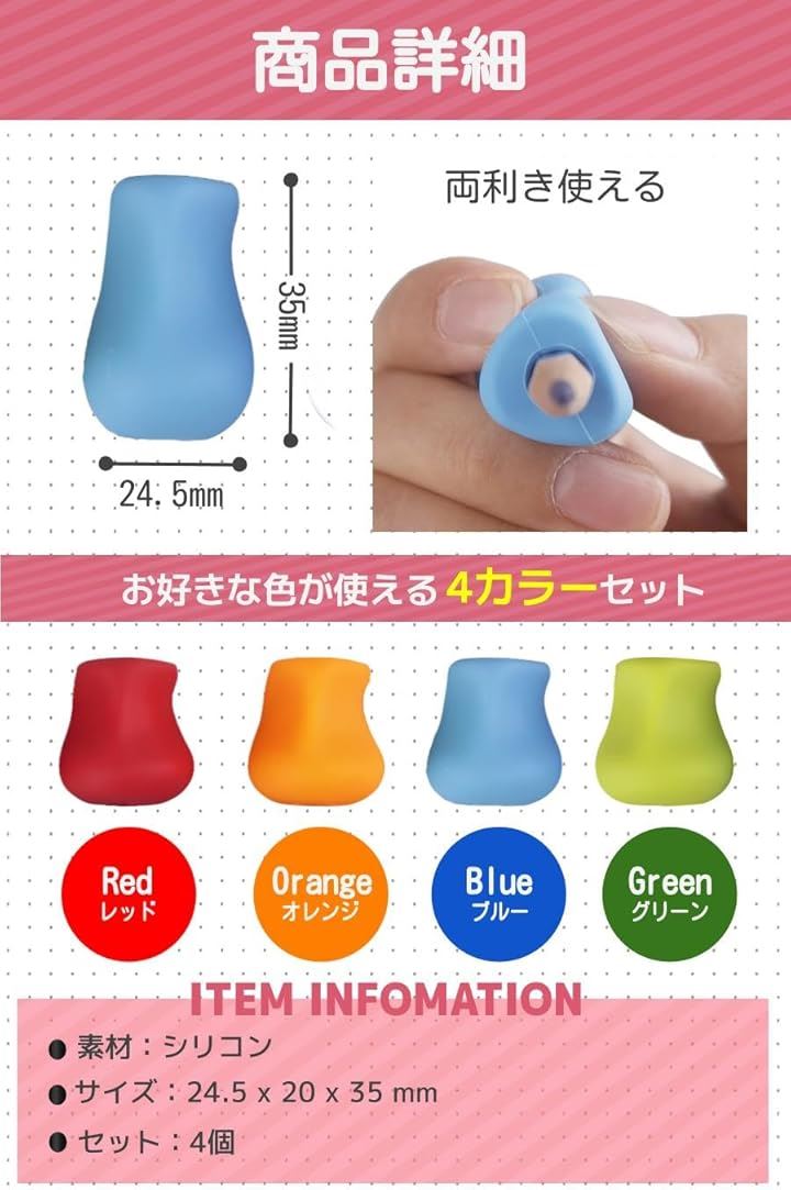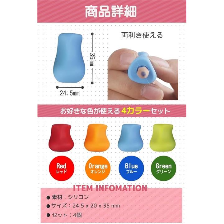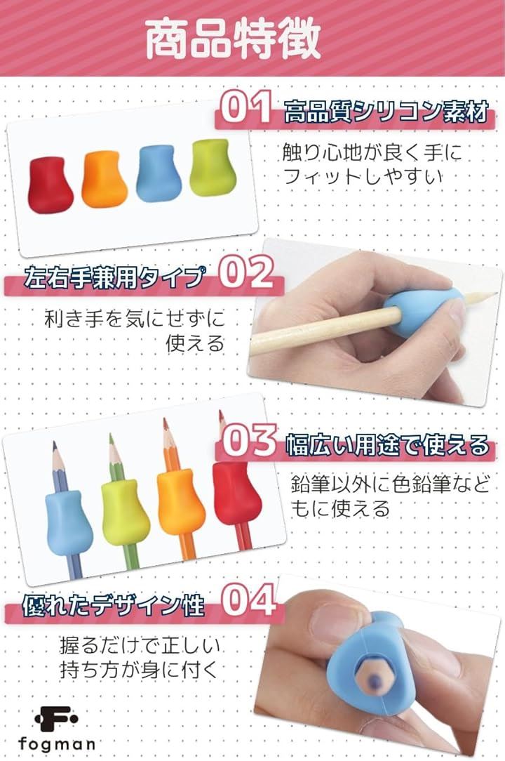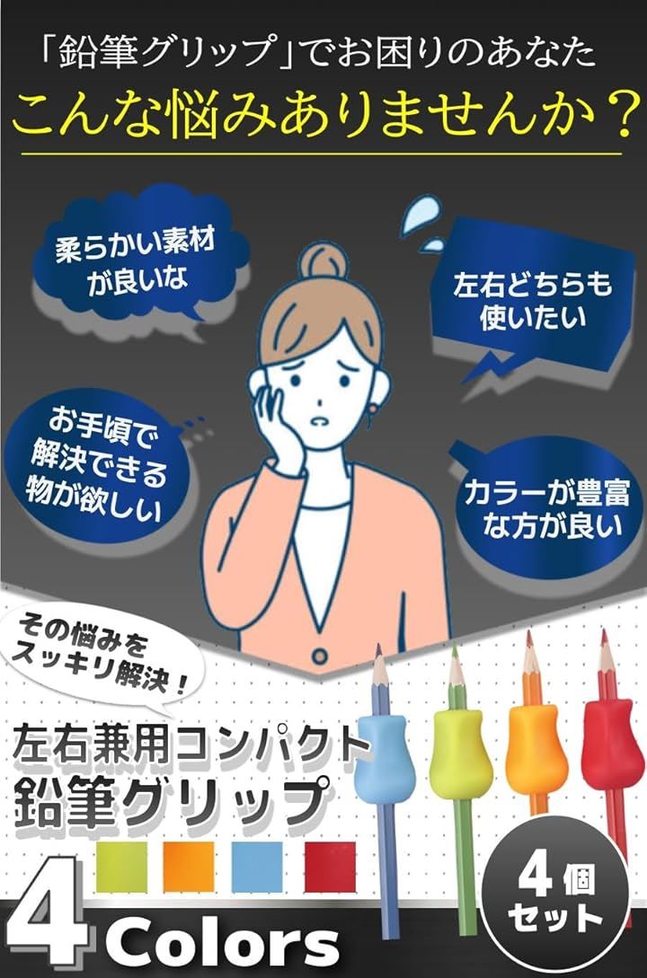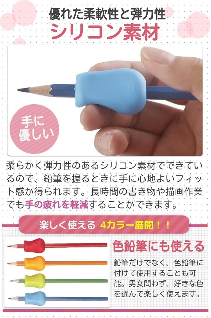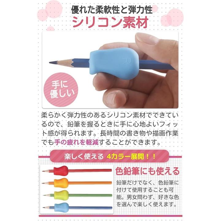 鉛筆グリップ 左右兼用 握り方 もちかた 小学生 コンパクト かわいい 4個セット