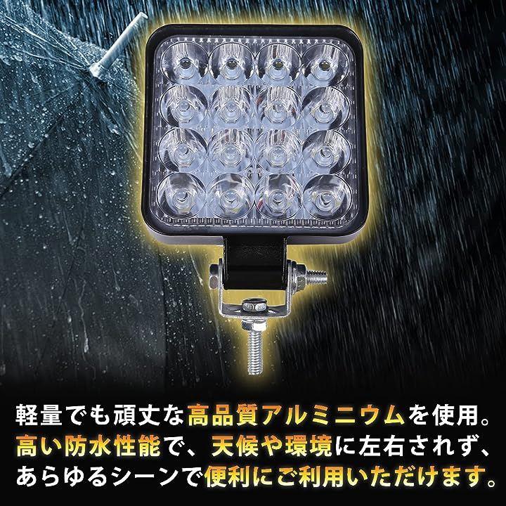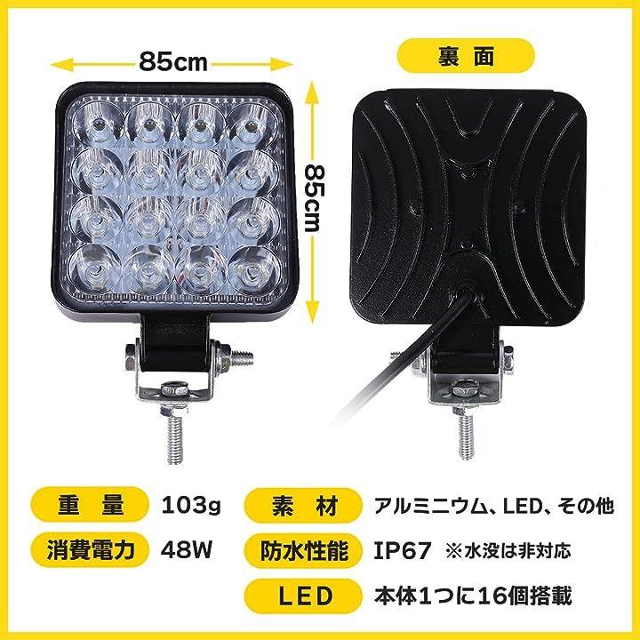 LED ワークライト 12V/24V 兼用 48W 6000K ホワイト 防水 作業灯 デッキライト 投光器 車幅灯 照明 トラック 2個セット