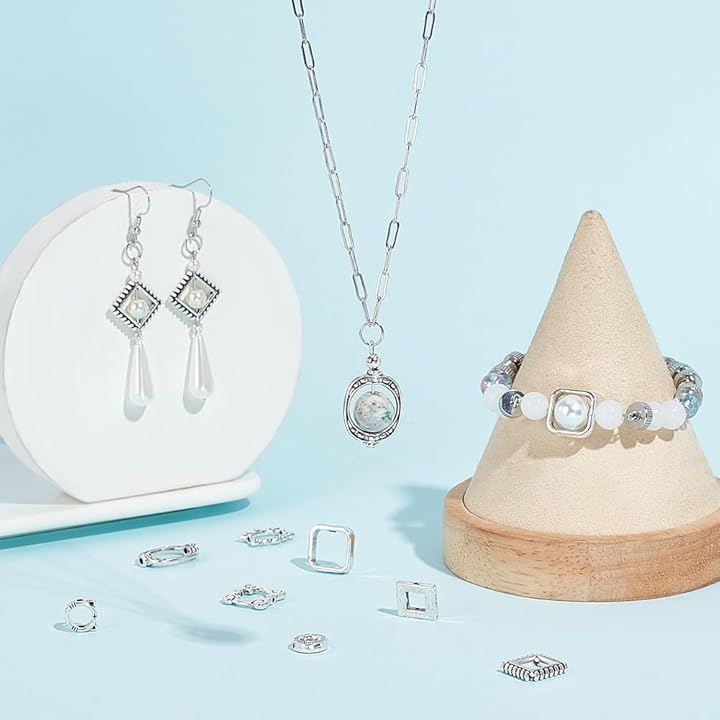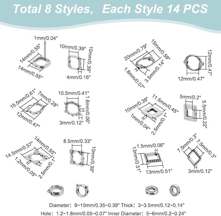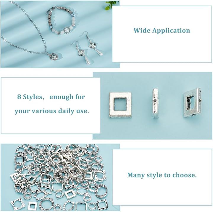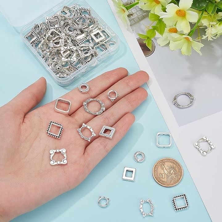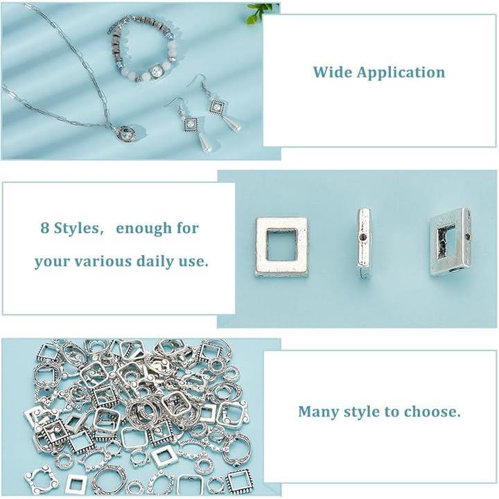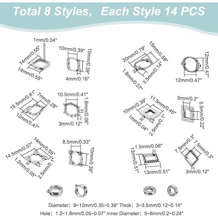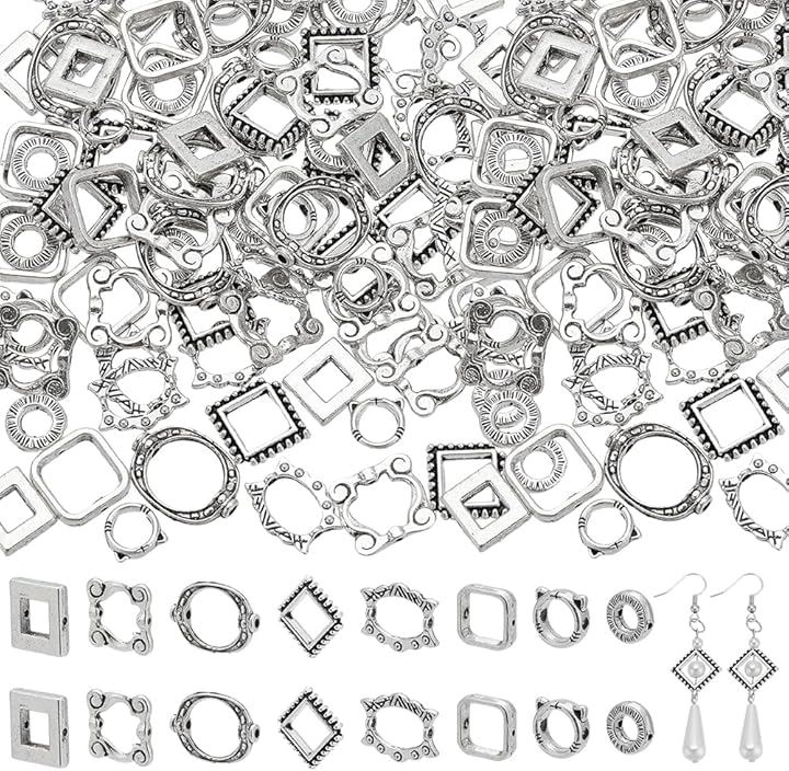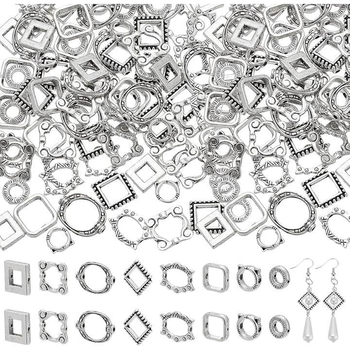 約112個 ビーズ用フレーム レジン空枠 8種 メタル リングビーズ アクセサリーパーツ 欧風 レトロ フォトフレーム スタイル DIYのイヤリング ブレスレット ネックレス