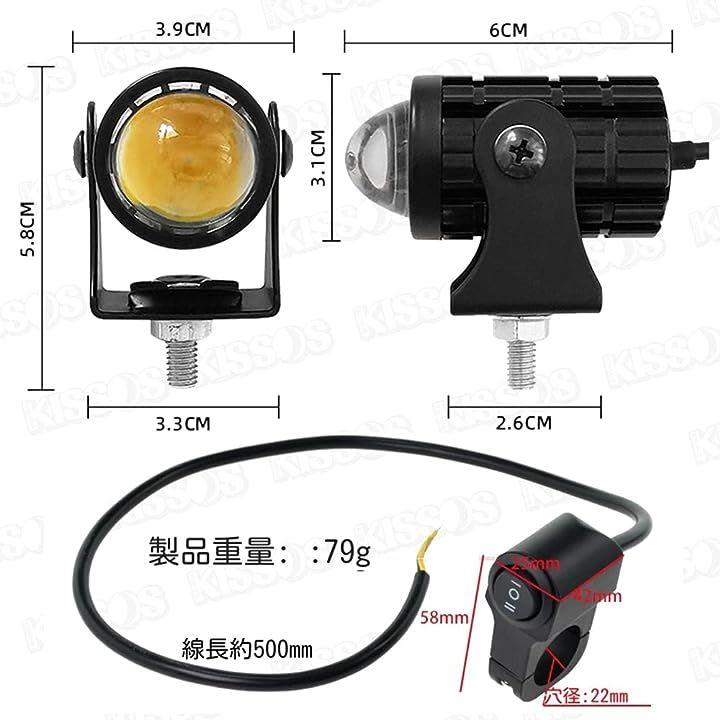 互換品バイク フォグランプ ヘッドライト 補助灯 オートバイ LED スイッチ付き 作業灯 自動車 白色 黄色 切り替え 防水 汎用型 ユニバーサルタイプ