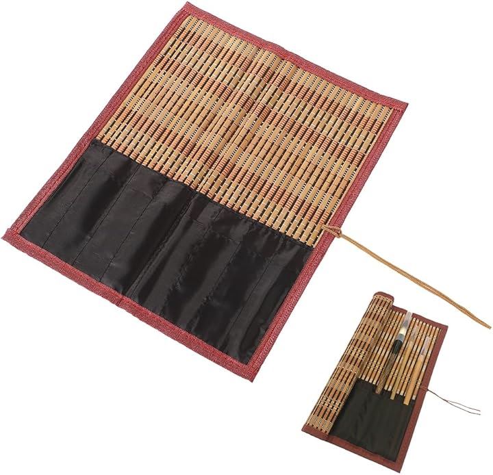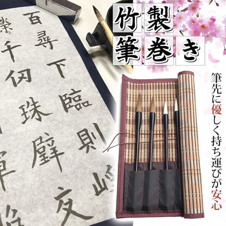 筆巻 筆巻き 書道 習字 竹 筆入れ 習字道具 ポケット付き 7本収納