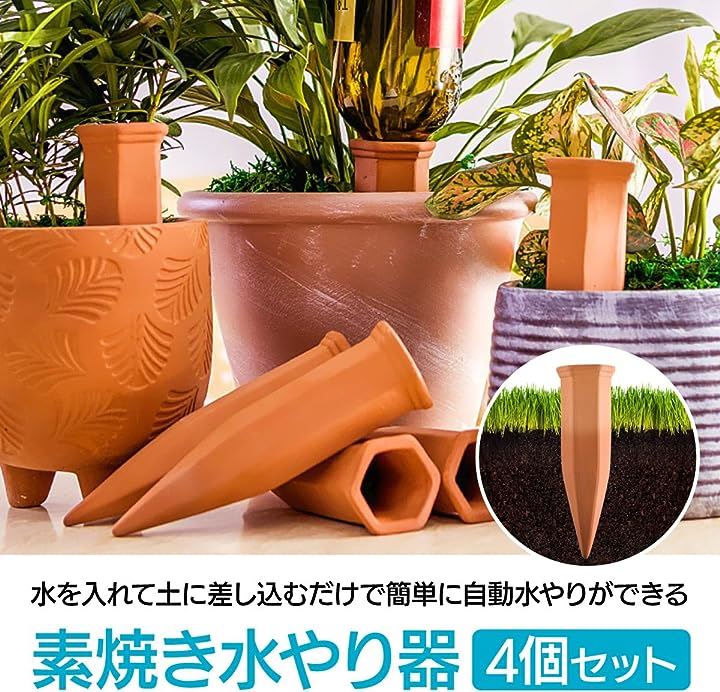 自動水やり器 陶器 景観デザイン ペットボトル 水やり自動 観葉 植物 鉢植え 4本セット