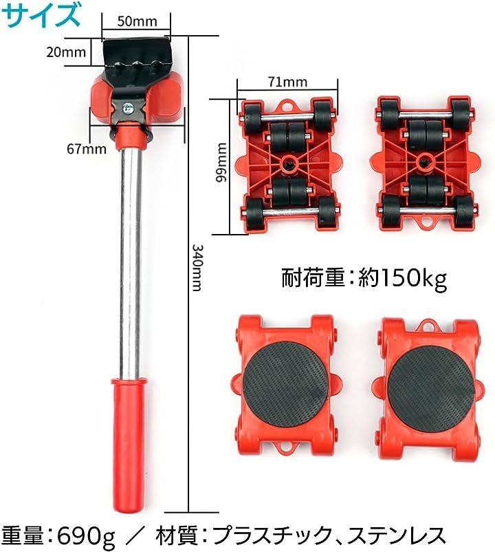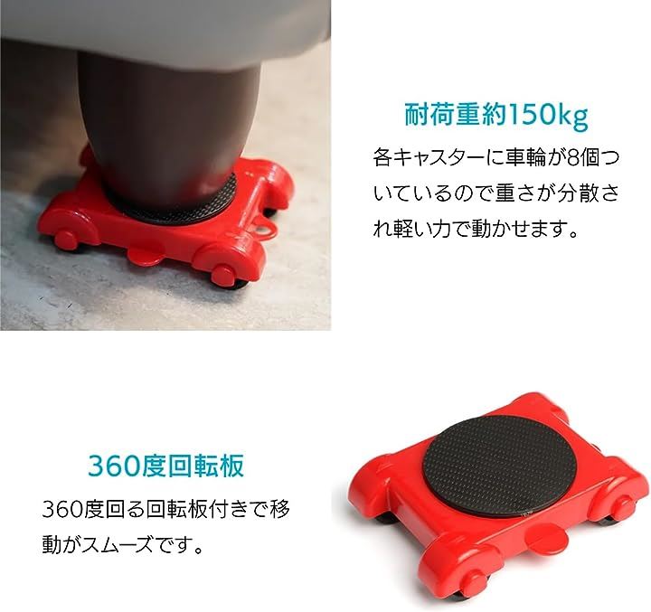 家具移動キャスター 360度回転 自由組み立て 重物 移動用