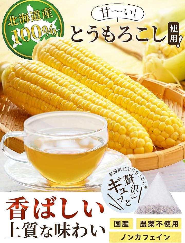 コーン茶 とうもろこし茶 香ばしい 北海道100% ノンカフェイン ノンカロリー 農薬不使用 40包x4g ティーバッグ 国産