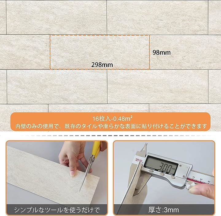 大理石調 タイルシート キッチン タイルシール 防水 洗面所 DIY 壁 パネル 耐熱98x298mm 16枚入