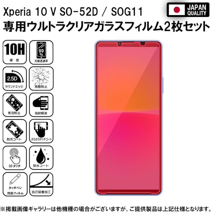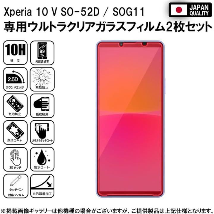 2枚セットフィルム Xperia 10 V SO-52D / SOG11 対応 ガラスフィルム 保護フィルム 強化 高透過 高光沢 日本製 旭硝子 硬度10H 2.5Dラウンドエッジ