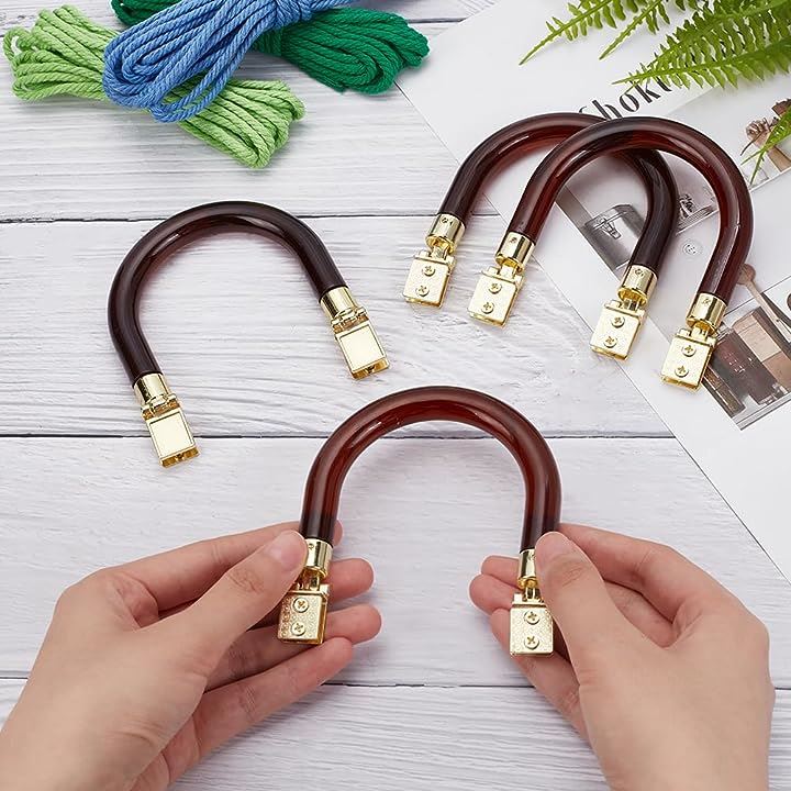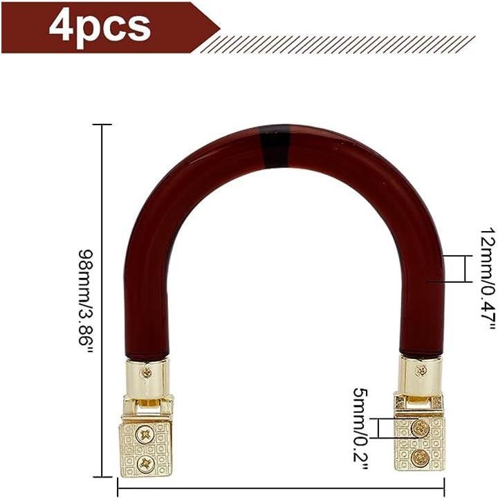 4個 U型 ハンドバッグ持ち手 アーチ型バッグ持ち手 交換用 樹脂製バッグ持ち手 ネジ付きフレーム DIY ハンドメイド 9.8x8.5 cm