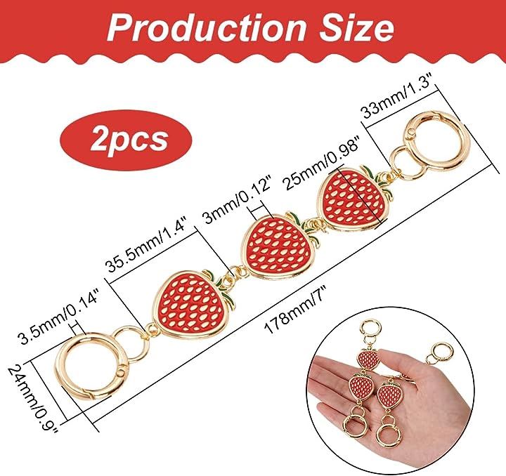 2本入りパースチェーンチャーム、17.8cmバッグストラップエクステンダー ハンドバッグ装飾用チェーン レッド