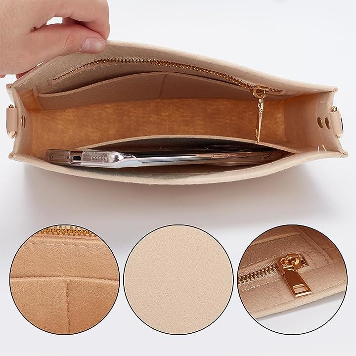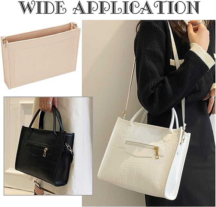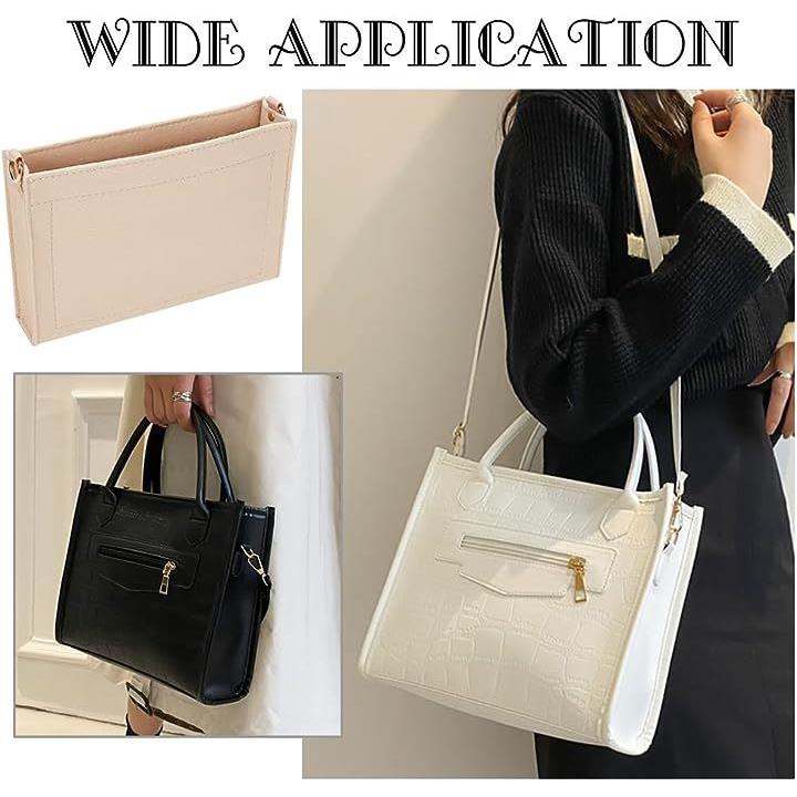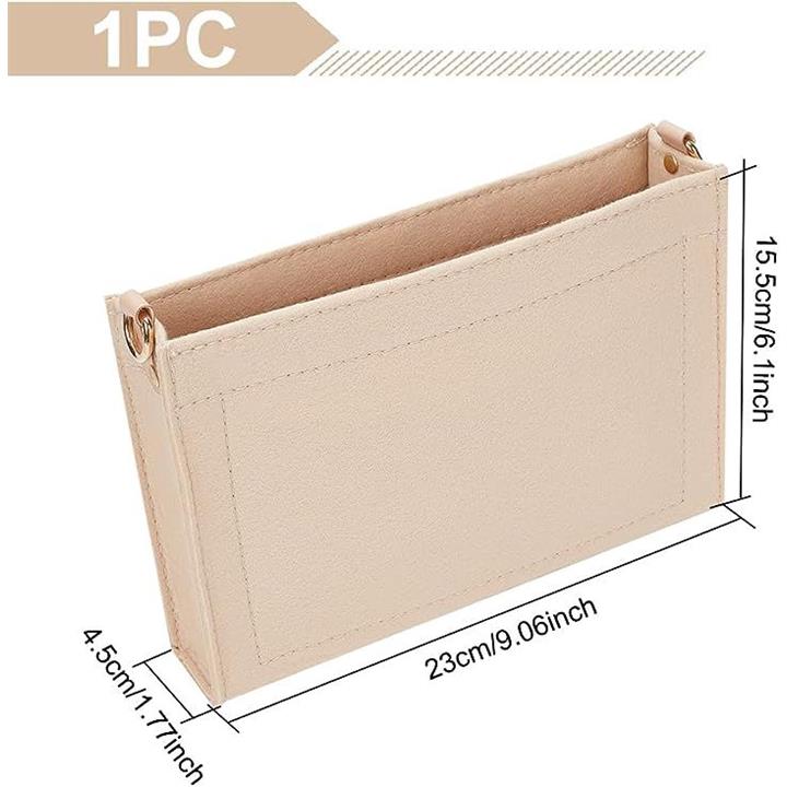 フェルト製パース用オーガナイザーインサート 小型トートバッグ用シェイパー トイレタリーポーチ用 23x15.5x4.5cm ベージュ