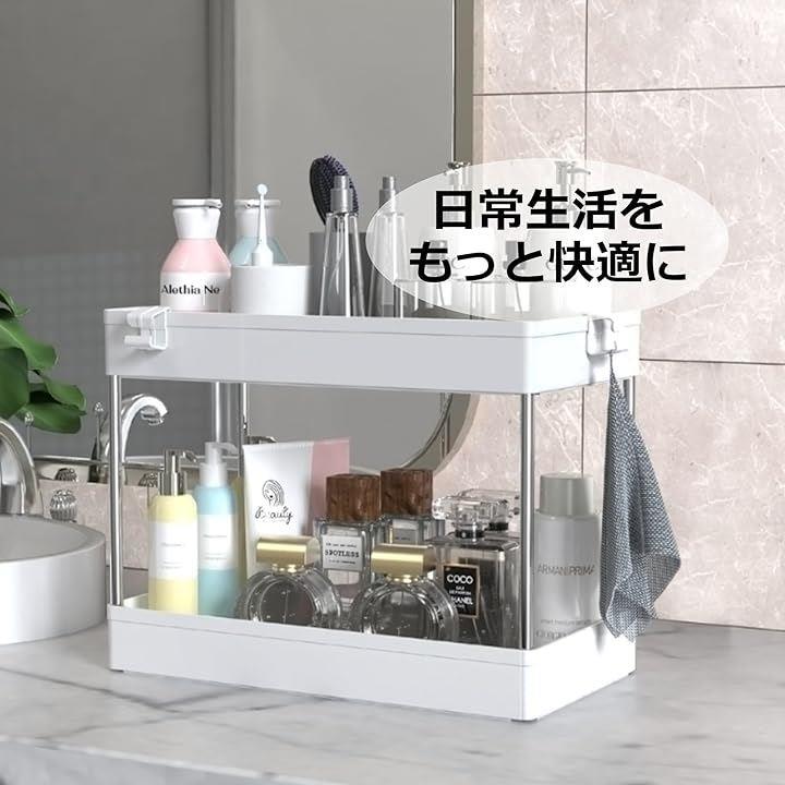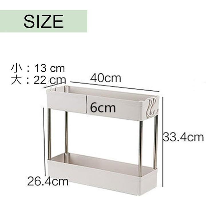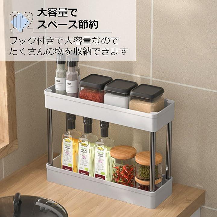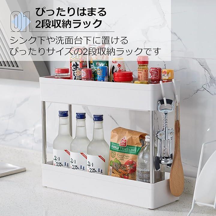 シンク下 キッチンラック 調味料収納 台所 隙間収納 省スペース 組立簡単 ホワイト フック付き 幅13cm 2段