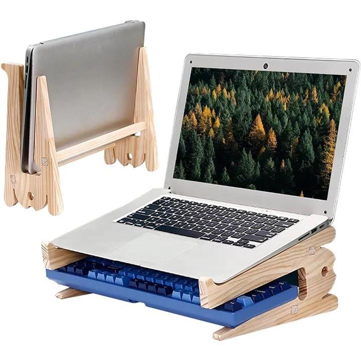 ノートパソコンスタンド 縦置き 木製 簡単組立て 収納 姿勢改善 放熱性