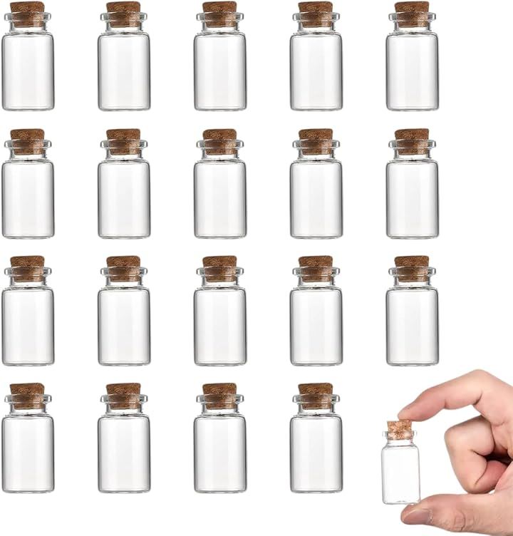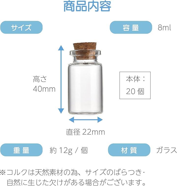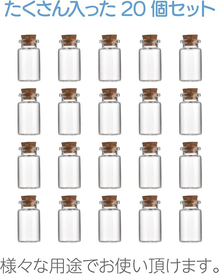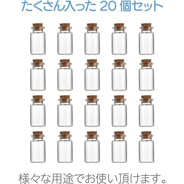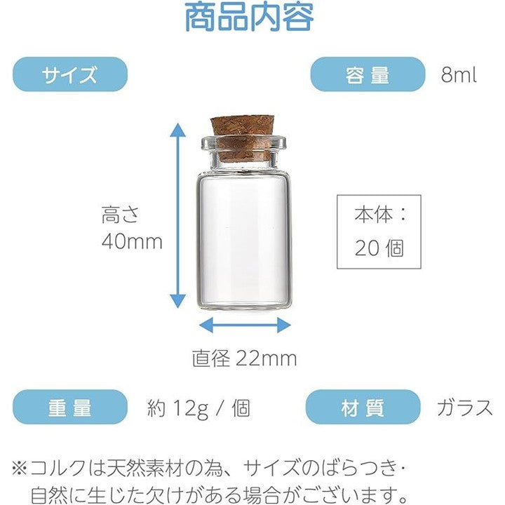 ガラス 小瓶 コルク栓付 透明 ミニボトル 標本 透明ボトル スパイスボトル ミニチュア 小物入れ 装飾 20個セット 8ml