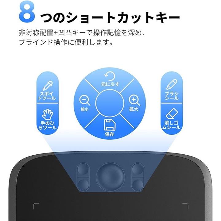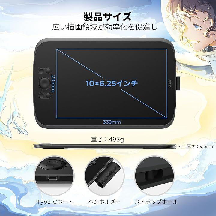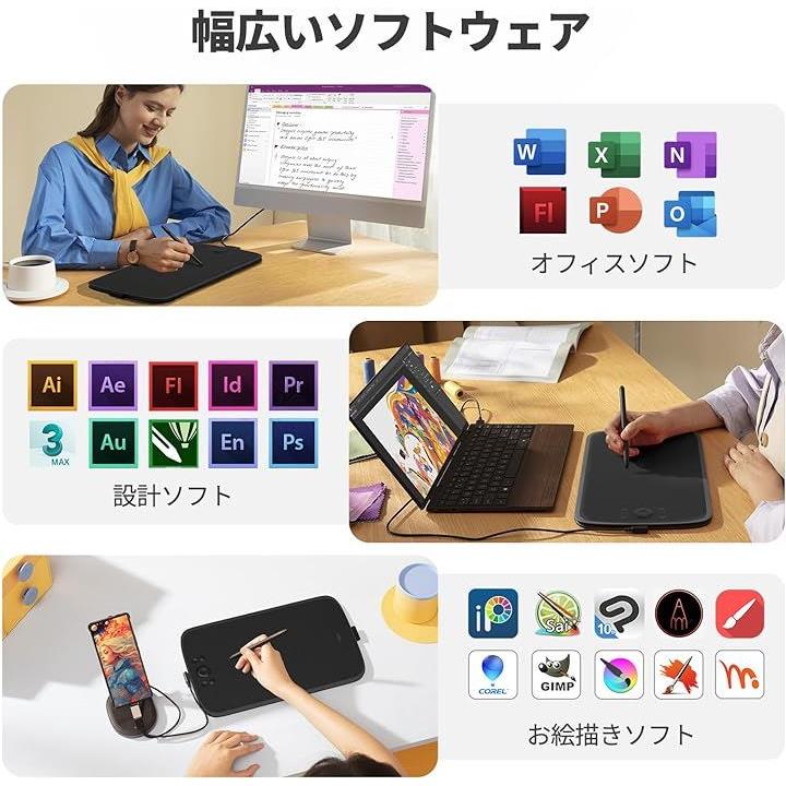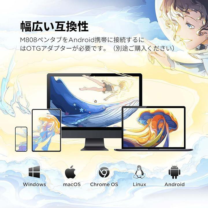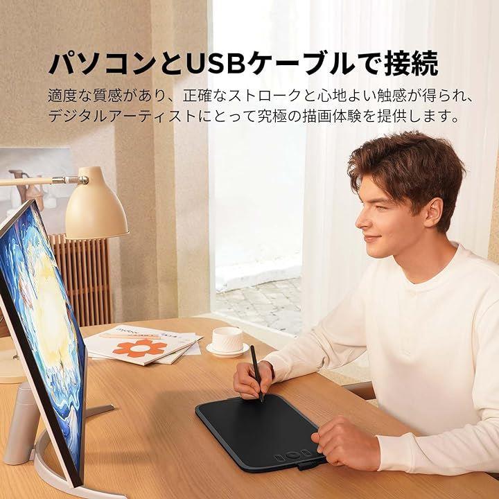 互換品ペンタブ M808 ペンタブレット 10x6.25インチ 8192レベル筆圧 60°傾き検知 板タブ 8個ショートカットキー スマホ対応 9.3mm厚さ イラスト お絵描き オンライン授業 動画編集 Android Windows Mac Chrome Linux対応 ブラック