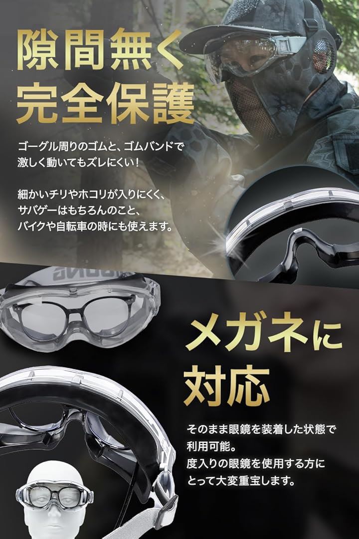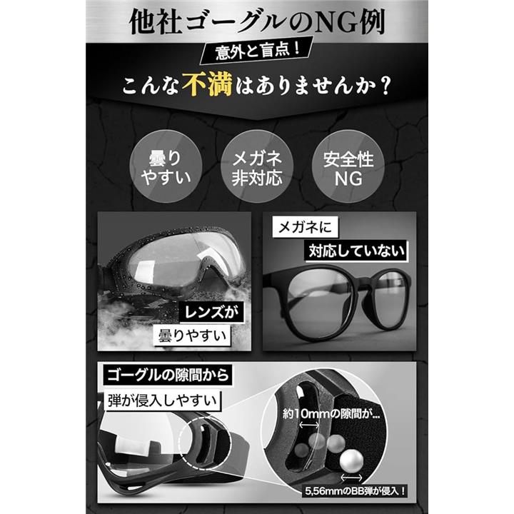 プロのサバゲーマー推薦 ゴーグル 眼鏡対応 メガネ対応 曇り止め加工 日本企業