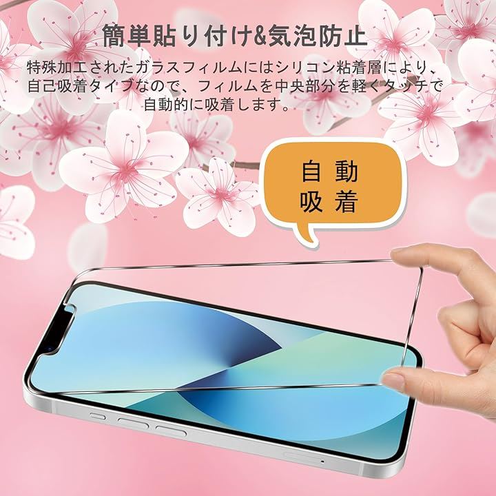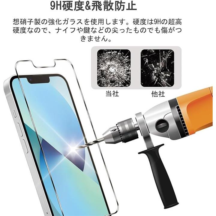 1枚セット iPhone 13 ガラスフィルム 日本AGC素材採用硬度9H 耐衝撃 気泡防止 高光沢 アイフォン13 強化ガラス 貼り付け簡単 自動吸着