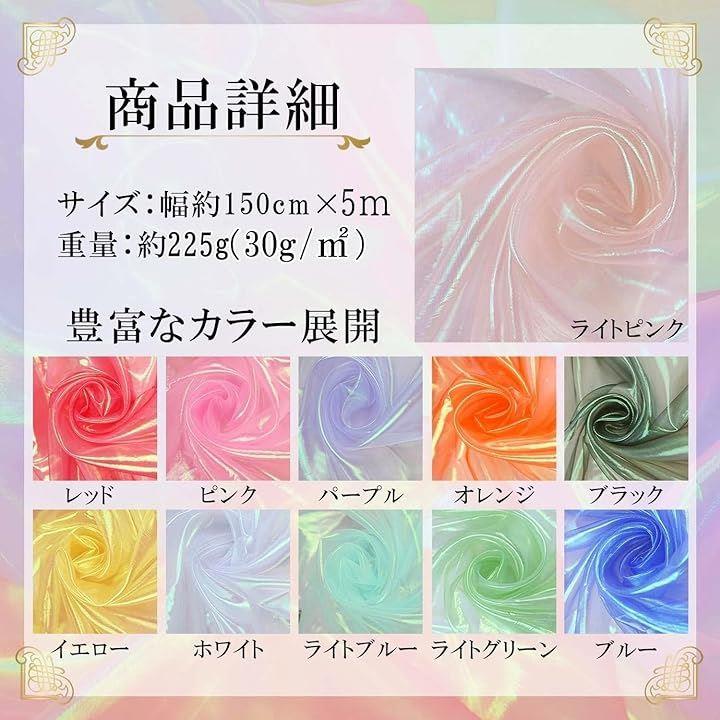 選べる11色 オーロラ オーガンジー 生地 5mx150cm 手芸 カラー 透明 無地 布