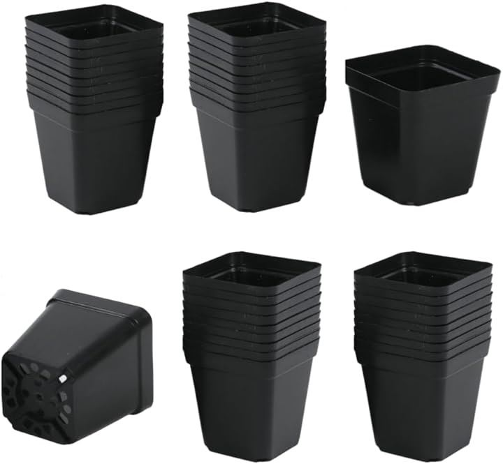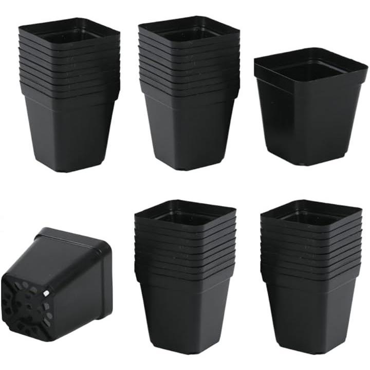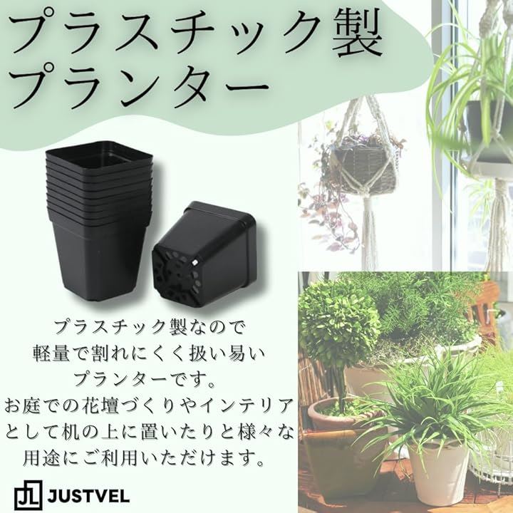 育苗ポット 50個セット 植木鉢 スリット鉢 プラ鉢 プランター フラワーポット プラスチック 四角 黒 軽量