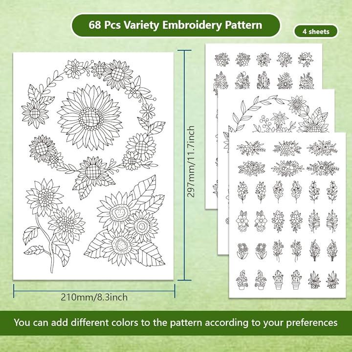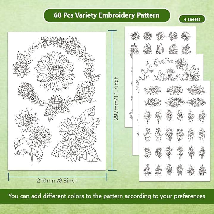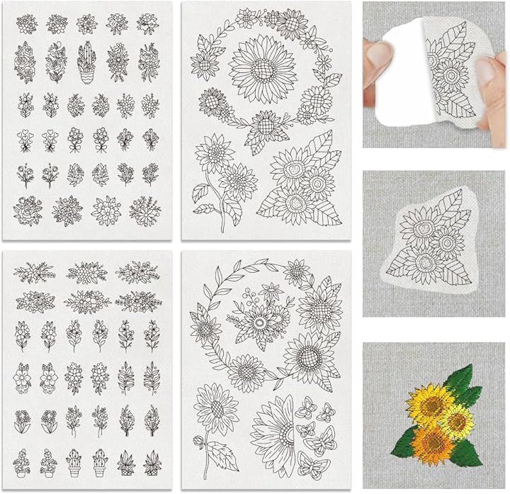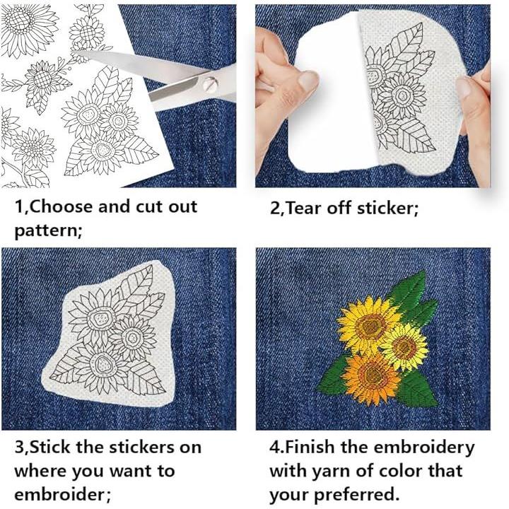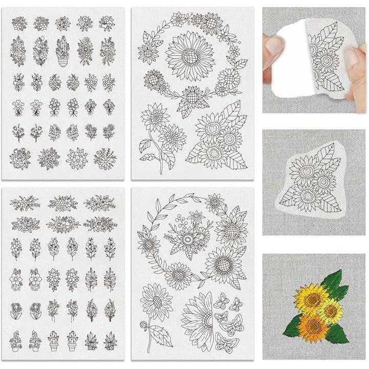 1セット4枚 刺繍用布 刺繍キット 70個モチーフ 下絵 図柄 不織布 水溶性 刺繍補助 刺しゅう クロスステッチ 手作り DIY刺繍工具 初心者