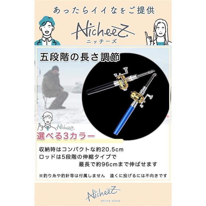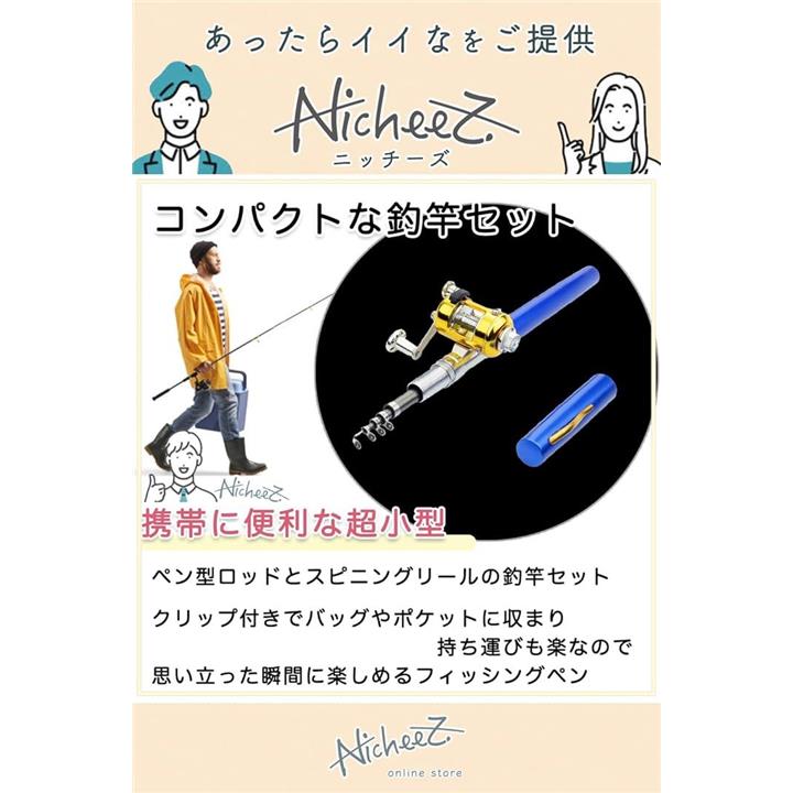 ペン型 ロッド リール付 釣竿 小型 軽量