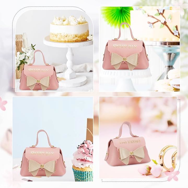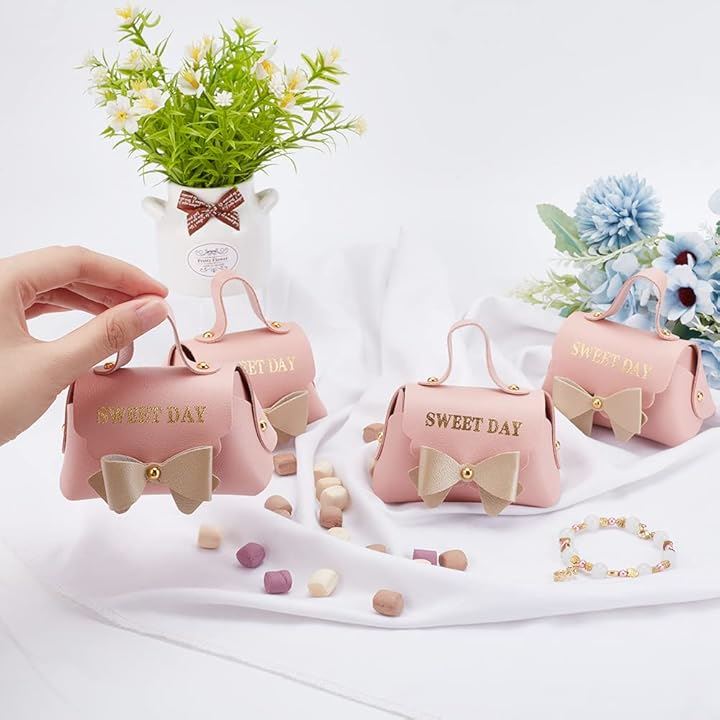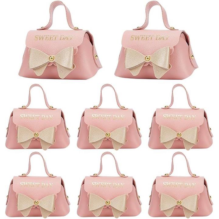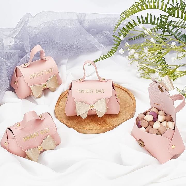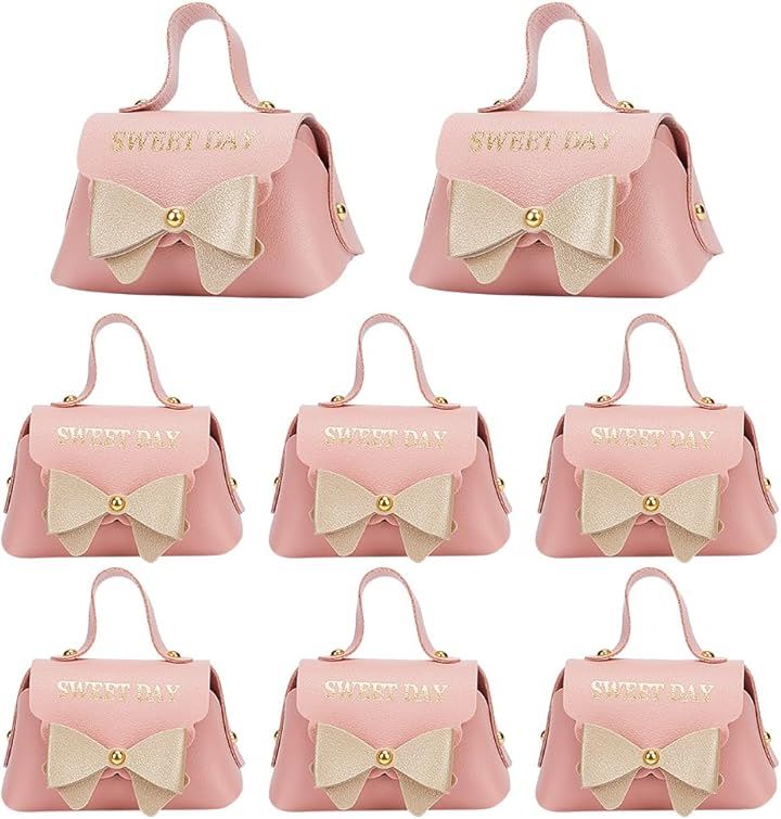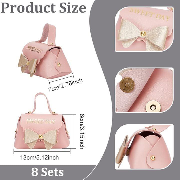 8個入り ピンクレザー製リボン結びギフトボックス 再利用可能キャンディギフトボックス 持ち手付き ウエディング・誕生日・引っ越し祝い用 7x13x8cm/2.76x5.12x3.15インチ