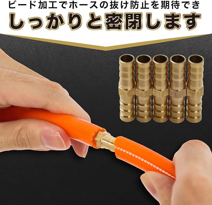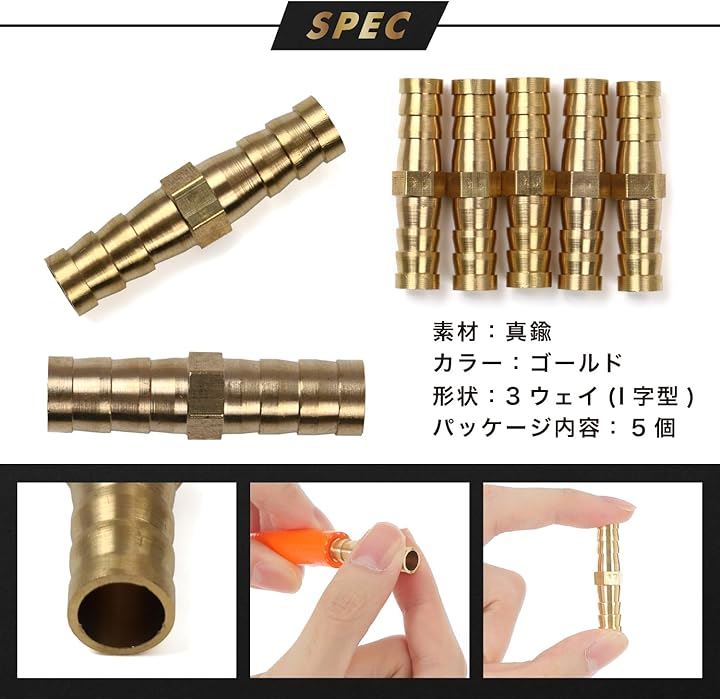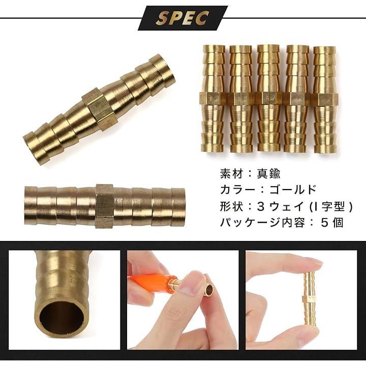 スプレンノ バーブ継手 ホース継手 真鍮製 フィッティング I型 5個入り ストレート コネクタ パイプ ジョイント