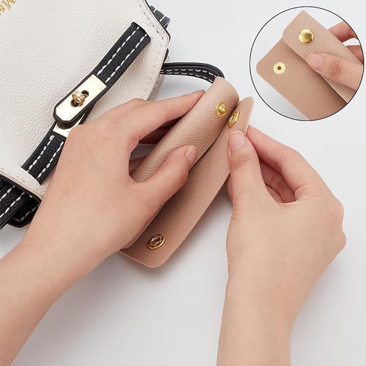 PUレザーハンドバッグ持ち手ラップカバー持ち手、トートバッグ持ち手プロテクター ラゲッジ グリッププロテクター ショルダーバッグ パッド スナップボタン付き スーツケース 旅行カバン ショッピングバッグ用、10x13cm