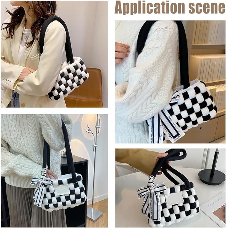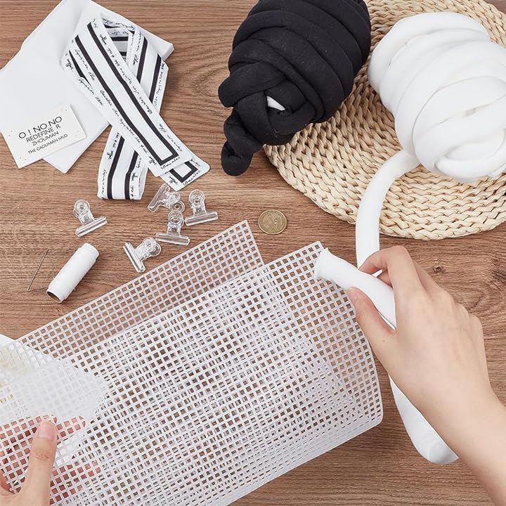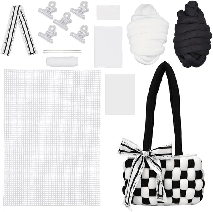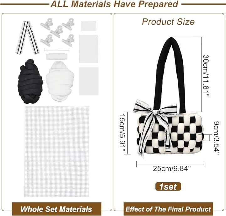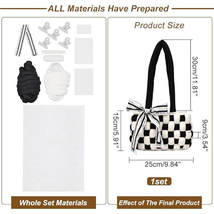 手織りハンドバッグ制作キット レディース ショルダーバッグ編みキット DIY ジャイアントウールコード ミニバッグ材料キット 23x15x10cm