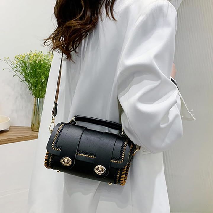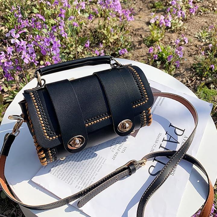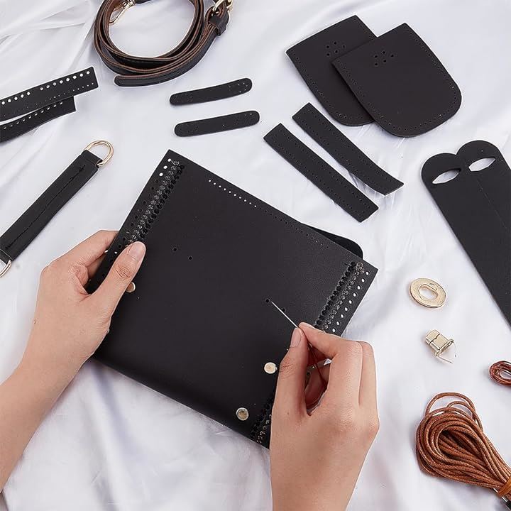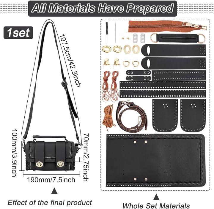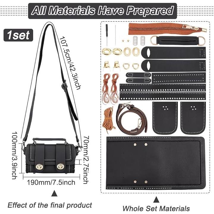 DIYショルダーバッグ製作キット PUレザー 編み物 クロシェバッグ製作素材 クロスボディバッグ 刺繍 19x7x10cm ブラック